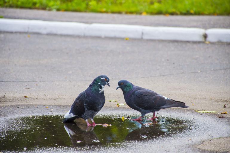 Keywords: pigeons love birds summer street pavement