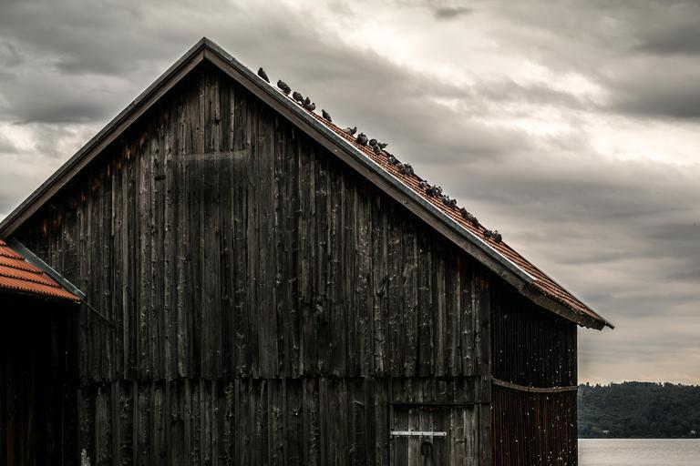 Keywords: pigeons scale wood shed wood wooden slats ammersee sailing school wooden boards wall boards clouds sky germany bavaria
