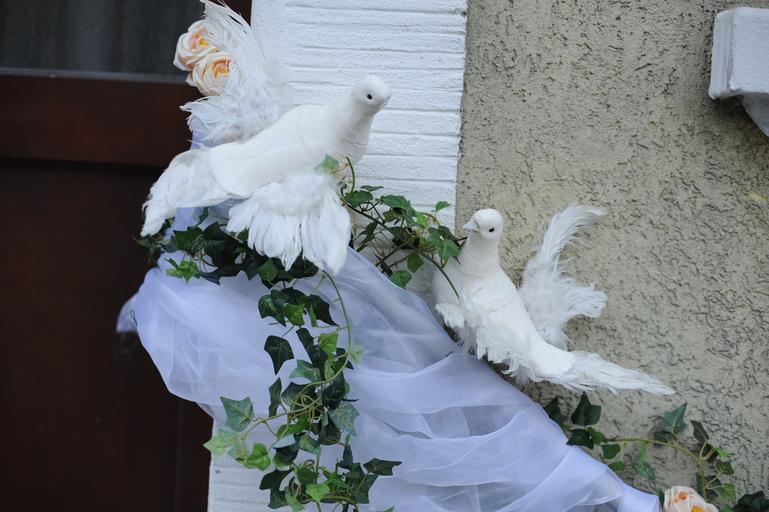 Keywords: pigeons wedding arrangement marriage decoration white doves