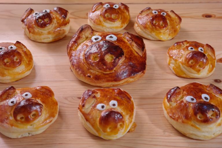 Keywords: piglet pastries pig family family yeast biscuits delicious lucky pig dough sweet funny sow children pig child kids of sow