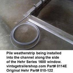 | Keywords: Most late 50s and early 60s vintage trailers used Hehr Jalousie windows. The plastic backing of this pile weatherstrip is identical to the width and thickness of the original aluminum-backing. vintagetrailershop.com Part# 0114E Original Hehr Part# 010-122 |
