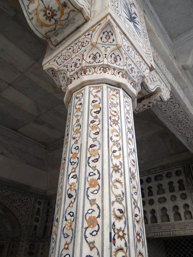 Keywords: pillar cornice interior marble inlay precious stones inlaid agra fort musamman burj mughals architecture palace castle white marble agra india