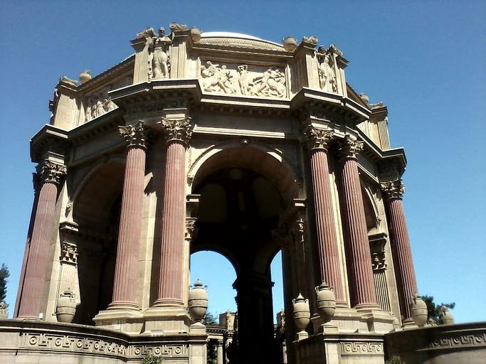 Keywords: pillars elaborate palace of fine arts san francisco california palace fine arts statue stonework stone artwork ancient historical artistic creative creativity design structure
