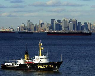 Keywords: pilot boat boats ships harbor water new york city skyline nyc building skyscrapers buildings skyscraper sky clouds river bay
