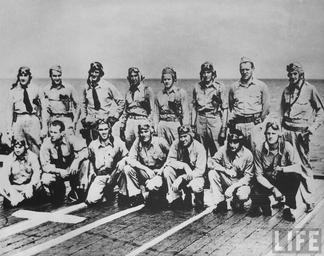 Keywords: Pilots of VT-8.jpg en Pilots of Hornet's VT-8 shortly before battle of Midway Standing L-R Owens Ensign Fayle Waldron R A Moore J M Moore Evans Teats Cambell Kneeling L-R Ellison Kenyon Gray sole survivor Gay Woodson Creamer Miles cs Piloti VT-8 z Hornetu těsně před bitvou u Midway Stojící zleva do prava Owens Ensign Fayle Waldron R A Moore J M Moore Evans Teats Cambell Klečící zleva do prava Ellison Kenyon Gray Gay jediný přeživší Woodson Creamer Miles http //images google com/hosted/life/l imgurl 4cbd23b1e74ea8d9 q John 20C 20Waldron prev /images 3Fq 3DJohn 2BC 2BWaldron 26hl 3Den 26lr 3D 26sa 3DN 26um 3D1 US Government befor 1942-06-04 http //www history navy mil/photos/pers-us/uspers-w/j-waldrn htm Photo NH 93595 PD-USGov-Military-Navy Aboard USS Hornet CV-8 Battle of Midway US forces |