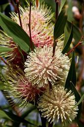 Keywords: pin cushion hakea flowers australian native spherical pink white shrub