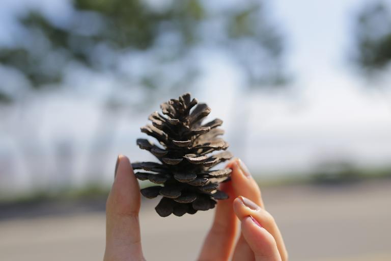 Keywords: pine cone hand landscape