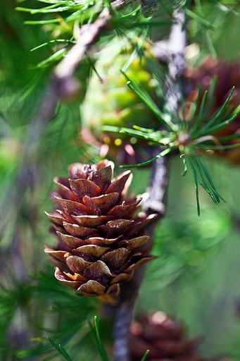 Keywords: pine cone larch larch cone nature tree sprig iglak plant coniferous trees clarity sunny closeup summer larch needles flora the cyclicality of development maturation vanishing