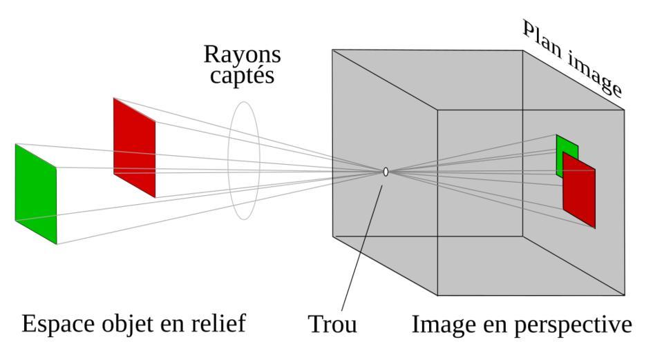 | Keywords: Pinhole camera.svg en Principle of the pinhole camera only rays passing through the hole can form the image which is in perspective fr Principe de la sténopé seuls les rayons passant par le trou peuvent former l'image qui se trouve en perspective de Lochkameraprinzip nur die Strahle die durch das Loch durchfahren können das Bild in Perspektive ausbilden own Trassiorf 2011-02-03 own work File Pinhole camera-en svg inkscape Translation possible Geometry diagrams Epipolar geometry | ||||