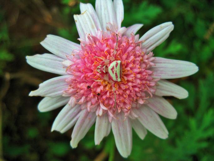 Keywords: pink daisy flower daisy pink spider crab white camouflage predator