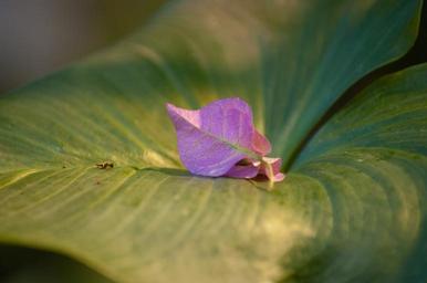 Keywords: botaniska trädgården botaniskaträdgården bothanical garden bothanicalgarden finland ruissalo runsala turku åbo A pink leaf(?) on a green leaf. A pink leaf(?) on a green leaf.