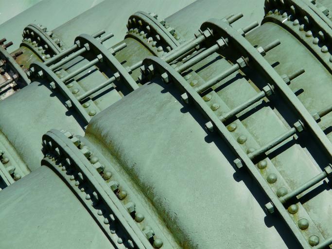 Keywords: pipes copper water pipe line metal green oxidized rivet gland screw