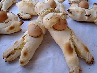 Keywords: Pippia Cun S'Ou.jpg <b>Pippia Cun S'Ou</b> <br><i>Pane Pasquale</i> Bambolina di pane con un uovo in corrispondenza della pancia simbolo di buon auspicio e di maternità per le donne Giba Sardegna 2005-04-11 own assumed Funerea Giba Pane tradizionale della Sardegna Bread and Christianity Human-shaped breads Fertility in art Eggs in folk beliefs Boiled eggs |