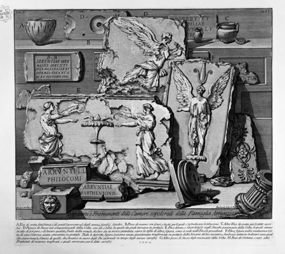 | Keywords: Piranesi-2016.jpg 2 2015 2017 XV The tomb of L Arrunzio family fr Plusieurs inscriptions romaines <br> en haut à gauche D is M anibus / Arruntiae Her/mione Arrunti / Hermias pater et / Hermes tata et si/bi et posteris que suis CIL 06 5941 ; en bas à gauche Arruntiae / Parthenionis // Arruntiae / Selene // L uci Arrunti L uci l iberti / Philocomi 06 5943 CIL 13 01267a ; en bas à droite Arruntiae / Parthenionis // Arruntiae / Selene // L uci Arrunti L uci l iberti / Philocomi 06 5943 CIL 13 01267a Barbault Piranesi Tomb of L Arrunzio family Ancient Roman inscriptions in Rome CIL VI 005941 CIL VI 005943 |