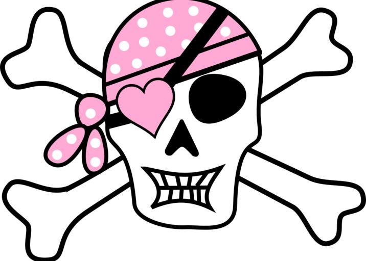 Keywords: pirate skull skull and crossbones eye patch pink heart polka dots girl
