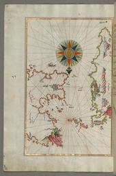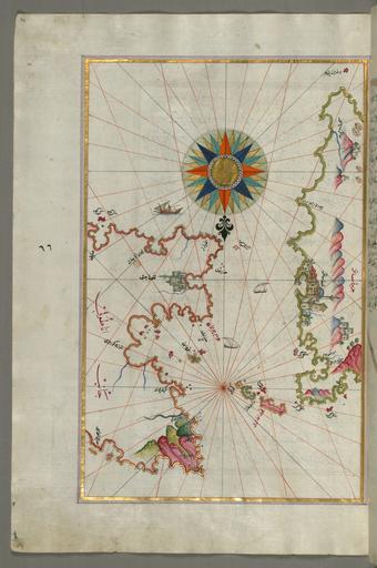Keywords: Piri Reis - Map of Chios Island Facing Kysos Fortress on the Anatolian Side - Walters W65870A - Full Page.jpg Piri Reis - Map of the Anatolian Coast Around the Bay of Izmir - Walters W65868B - Full Page jpg Piri Reis - Detailed Map of Sakiz Island with its Fortress and Other Topographical Features - Walters W65873A - Full Page jpg rtl This folio from Walters manuscript W 658 contains a map of Chios Sakiz Saqiz Island facing Kysos Çesme Fortress on the Anatolian side late 11th century AH/AD 17th century-early 12th century AH/AD 18th century Ottoman ink and pigments on laid European paper cm 34 24 accession number W 658 70A 79721 Ahmad Afandi date and mode of acquisition unknown see folio 4a Ali Afandi date and mode of acquisiton unknown see folio 4a Sayyid Ali Qapudan date and mode of acquisition unknown see folio 1a Sultan Mahmud Khan date and mode of acquistion unknown waqf seal and followed by a bequest statement now erased and the seal of the inspector of wakfs Mustafá Tahir see folio 4a Henry Walters Baltimore date and mode of acquisition unknown Walters Art Museum Henry Walters Acquired by Henry Walters place of origin Turkey Walters Art Museum license 2D Piri Reis Kitab-ı Bahriye Walters MS 658 070A Media contributed by the Walters Art Museum needs category review Anatolian Coasts by Piri Reis in the Walters Art Museum |