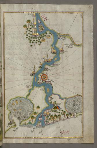 | Keywords: Piri Reis - Map of the River Nile From Its Estuary South - Google Art Project.jpg LargeImage ink and pigments on laid European paper Ahmad Afandi date and mode of acquisition unknown see folio 4a; Ali Afandi date and mode of acquisiton unknown see folio 4a; Sayyid Ali Qapudan date and mode of acquisition unknown see folio 1a; Sultan Mahmud Khan date and mode of acquistion unknown waqf seal and followed by a bequest statement now erased and the seal of the inspector of wakfs Mustafá Tahir see folio 4a; Henry Walters Baltimore date and mode of acquisition unknown; Walters Art Museum 1931 by bequest special url_id iAEGJEt4-L80Gg PD-old-100-1923 1555 Maps by Piri Reis Google Art Project works by Piri Reis Old maps of the Nile Islamic manuscripts in the Walters Art Museum |