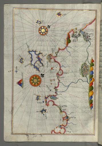 | Keywords: Piri Reis - Map of the Western Italian Coast as Far as the City of Pisa - Walters W658244A - Full Page.jpg Piri Reis - Map of the Western Italian Coast as Far as the City of Rome - Walters W658240B - Full Page jpg Piri Reis - Leaf from Book on Navigation - Walters W658245A - Full Page jpg rtl This folio from Walters manuscript W 658 contains a map of the western Italian coast as far as the city of Pisa Pize late 11th century AH/AD 17th century-early 12th century AH/AD 18th century Ottoman ink and pigments on laid European paper cm 34 24 accession number W 658 244A 79847 Ahmad Afandi date and mode of acquisition unknown see folio 4a Ali Afandi date and mode of acquisiton unknown see folio 4a Sayyid Ali Qapudan date and mode of acquisition unknown see folio 1a Sultan Mahmud Khan date and mode of acquistion unknown waqf seal and followed by a bequest statement now erased and the seal of the inspector of wakfs Mustafá Tahir see folio 4a Henry Walters Baltimore date and mode of acquisition unknown Walters Art Museum Henry Walters Acquired by Henry Walters place of origin Turkey Walters Art Museum license 2D Piri Reis Kitab-ı Bahriye Walters MS 658 244A Old maps of Tuscany Old maps of Pisa Old maps of Livorno Piombino in art Old maps of Elba Maps of Isola del Giglio Giannutri island Orbetello Monte Argentario Old maps of Lazio Civitavecchia Old maps of Florence |