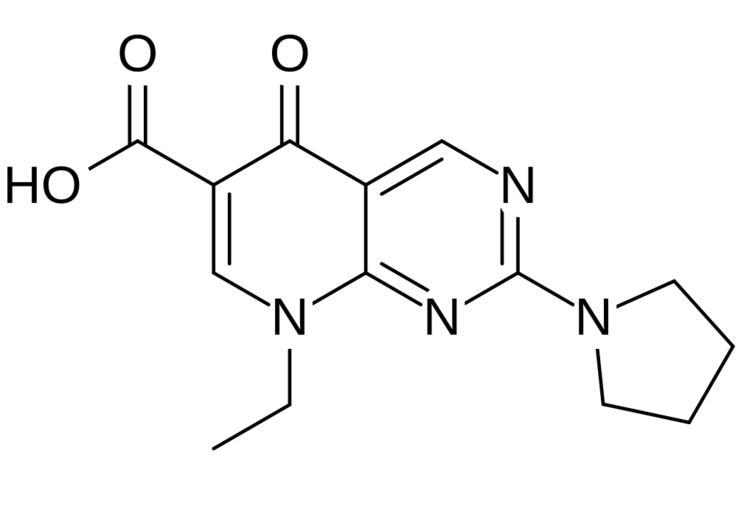 Keywords: Piromidic acid.svg Chemical structure of piromidic acid pyromidic acid Own 04 23 30 January 2014 UTC Ed Edgar181 Quinolone antibiotics Azolidines