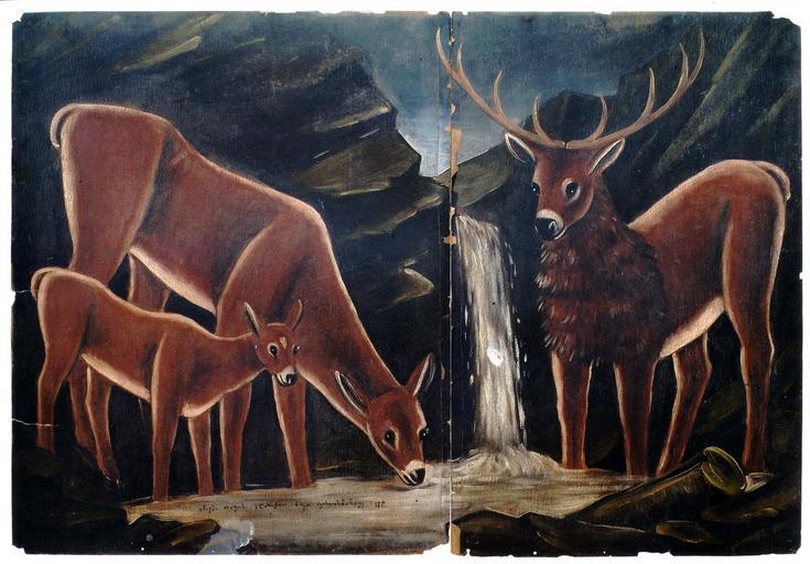 Keywords: Pirosmani. Three deers drinking water.jpg Artwork Creator Niko Pirosmani 1917 oil on cardboard cm 145 95 private collection Tbilisi accession number object history credit line http //3 bp blogspot com/_T21ZDE0tseA/Shh4bqL2Y8I/AAAAAAAAAkU/nL35FLYNSOw/s1600-h/p419 jpg 3 bp blogspot com Source of the second version http //diary-or-notes cocolog-nifty com/blog/files/Slide_Show_a zip diary-or-notes cocolog-nifty com Source of the first version http //www russianavantgard com/Artists/pirosmani/pirosmani_a_deer_family jpg www russianavantgard com Paintings by Niko Pirosmani Oil on cardboard 1917 paintings 1917 in Georgia Deer in art Source http //artgeorgia blogspot com/2009/05/pirosmani html artgeorgia blogspot com Source of the second version http //diary-or-notes cocolog-nifty com/blog/2009/01/post-e8fb html diary-or-notes cocolog-nifty com Source of the first version http //www russianavantgard com/Artists/pirosmani/pirosmani_a_deer_family html www russianavantgard com PD-old-auto 1918 |