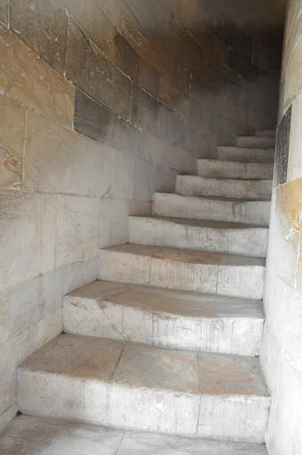Keywords: Note the wear pattern in the steps. It moves back and forth between the outside and inside of the spiral steps depending on which side of the lean you are on. When you are on the high side of the tower the wear pattern is in the inside of the spiral. When you are on the low side the tracks are on the outside of the spiral. Note the wear pattern in the steps. It moves back and forth between the outside and inside of the spiral steps depending on which side of the lean you are on. When you are on the high side of the tower the wear pattern is in the inside of the spiral. When you are on the low side the tracks are on the outside of the spiral.