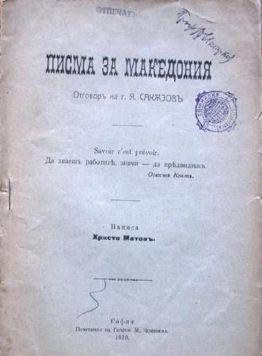 Keywords: Pisma za Makedonia Hristo Matov.JPG Ко ица на Писма за акедония на Х исто атов scanned 1910 Hristo Matov 1872 - 1922 PD-old Hristo Matov Book covers from Bulgaria 1910 books Books in Bulgarian