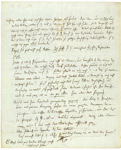Keywords: Pismo Jerneja Kopitarja Žigi Zoisu; Dunaj, 23. 9. 1812 (2).jpg storiti nič pametnega niti zase niti za svoje zaščitnike in prijatelje Samo to in <u>resnično</u> nobeno drugo hotenje pred katerim me Vaša milost dobrohotno svari je vzrok da tako zelo hrepenim po lastnem stanovanju Kolikor se poznam bom <u>pač</u> večno ostal samski prav <u>gotovo</u> pa do roka ki mi ga je svetovala Vaša milost Zato si ne morem kaj da ne bi tega stanovanja zaupal prijaznemu priporočilu Vaše milosti Vaši milosti bom celo dolgoval <u>vso</u> zahvalo Kapusa ni bilo na spregled Upam da bom vsaj <u>prihodnjega</u> septembra lahko videl Vašo milost Jenko si s pripravami še ni na jasnem in iz dneva v dan prelaga z <u>odločilnim</u> pismom zato zamuja tudi z zahvalo Vaši milosti <u>Končno</u> namerava čakati <u>samo še</u> dva do štiri dni Vedremo come andrà Vincenc verjetno še ni povprašal po Jenkovem bratu v Majšperku <u>Gotovo</u> je še tam po sporočilih iz Celja in tukajšnji željno pričakuje njegov odgovor Povabil ga je sem ker je vseeno če <u> au pis aller </u> strada tukaj ali tam Tukaj se govori predvsem o dveh novicah Pruski kralj prihaja na obisk s prestolonaslednikom da bi bil navzoč na velikem manevru in bi se nato poročil s princeso Leopoldino potem pa še da so Francozi 10 septembra vkorakali v Moskvo Jutri ali pojutrišnjem nas bo o tem najbrž uradno obvestil Opazovalec O Solariću in Appendiniju ki bene votant Vašo milost ponovno prosim za milost itd neposredno in po Vincencu Kopitar l r P S Kogl se je pred odhodom najbrž predstavil anfangen weder für mich noch für meine Gönner und Freunde Dieß eben und <u>wirklich</u> kein andres Anliegen wovor E G mich zu warnen die Güte für mich haben ist die Ursahe aus der ich mich so sehr nach einem eigenen Quartier sehne So viel ich mich kenne bleibe ich <u>wohl</u> immer frey und nun <u>gewiss</u> bis zu dem von E G mir bestimmten Termine Daher kann ich immer nicht umhin E G diess Quartier zu gütiger Empfehlung anheim zu stellen E G Möchte ich sogar <u>alles</u> verdanken Kapus hat sich nicht sehen lassen Ich hoffe E G wenigstens <u>künftigen</u> September zu sehen Jenko ist mit den Praeparativen noch nicht im Reinen und verschob es von einem Tag auf den andern den <u>entscheidenden</u> Brief zu bestellen Daher säumte er auch mit der danksagung an E G <u>Endlich</u> glaubt er <u>nur noch</u> 2 4 Tage zu warten Vedremo come andrà Vinzenz wird wohl Jenko s Bruder in Manspurg noch nicht erfragt haben Er ist <u>sicherlich</u> noch dort nach Cillier Nachrichten und der hiesige erwartet sehnsuchtsvoll seine Antwort Er hat ihn her berufen weil es eins sey ob er <u> au pis aller </u> hier oder dort hungere Neues wird hier besonders zweyerley gesprochen Der König von Preussen komme mit seinem Kronprinzen hieher um einem grossen Manoeuvre beizuwohnen und nachher die Prinzesse Leopoldine zu heuraten und dan daß die Franzosen den 9 10<sup>ten</sup> in Moskau eingerückt Morgen oder übermorgen muß es uns wohl der Beobachter officiel sagen ber Solarich und Appendini die bene votant Noch einmahl bittet E G ab etc und durch Vincenz um ein Wort der Gnade K m p PS Kogl wird sich vor der Abreise wohl präsentirt haben http //nl ijs si/e-zrc/zois/html/MP46 html 1812-09-23 creator Jernej Kopitar PD-old-100 <gallery> File Pismo Jerneja Kopitarja Žigi Zoisu; Dunaj 23 9 1812 1 jpg part 1 </gallery> 1812 letters Letters by Jernej Kopitar Letters to Sigmund Zois |