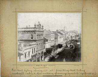 Keywords: archives state records nsw staterecordsnsw newsouthwales blackandwhite sydney pitt street pittstreet people horse and cart horseandcart text drawing photo border sketch black and white Pitt Street, Sydney, (showing east side) from King Street - showing condition of awnings, verandahs, signboards Dated: December 1878 Digital ID: 745_a019_a019000012 Rights: www.records.nsw.gov.au/about-us/rights-and-permissions In 1879 The City of Sydney Improvement Act was constituted as a result of the findings of the Sydney City and Suburban Sewage and Health Board regarding the poor condition of buildings and sanitation within the City of Sydney due to a lack of proper legislation and codes of building practice. The City of Sydney Improvement Board was appointed to execute the Act. These photographs, taken by private photographers for the Board, show buildings in need of repair or undergoing alterations, as well as views of streets showing the condition of awnings, signboards and walls of shops, hotels and private residences. We'd love to hear from you if you use our photos. Many other photos in our collection are available to view and browse on our website using Photo Investigator. Pitt Street, Sydney, (showing east side) from King Street - showing condition of awnings, verandahs, signboards Dated: December 1878 Digital ID: 745_a019_a019000012 Rights: www.records.nsw.gov.au/about-us/rights-and-permissions In 1879 The City of Sydney Improvement Act was constituted as a result of the findings of the Sydney City and Suburban Sewage and Health Board regarding the poor condition of buildings and sanitation within the City of Sydney due to a lack of proper legislation and codes of building practice. The City of Sydney Improvement Board was appointed to execute the Act. These photographs, taken by private photographers for the Board, show buildings in need of repair or undergoing alterations, as well as views of streets showing the condition of awnings, signboards and walls of shops, hotels and private residences. We'd love to hear from you if you use our photos. Many other photos in our collection are available to view and browse on our website using Photo Investigator. |