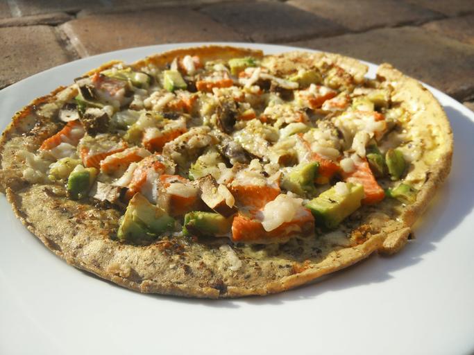 Keywords: pizza salmon avocado super food dairy free gluten free paleo food meal italian cheese delicious tasty pesto