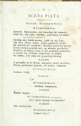 | Keywords: PL Aleksander Fredro-Komedye t.3 050.jpeg en dramaty pl dramas http //polona pl/dlibra/doccontent2 id 193 Cyfrowa Biblioteka Narodowa Creator Aleksander Fredro Komedye Series title III Stanisławowie i Tarnowie u Kuhna i Milkowskiego 1830 Lviv pl PD-old-100 Komedye t 3 Aleksander Fredro |