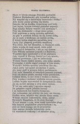 Keywords: PL Wacław Potocki-Wojna chocimska 086.jpeg epic poem poemat http //polona pl/dlibra/doccontent2 id 7493 Cyfrowa Biblioteka Narodowa Creator Wacław Potocki Wojna chocimska Poemat w 10 częściach Series title Biblioteka najcelniejszych utworów literatury europejskiéj S Lewental S Lewental 1880 Warszawa pl PD-old Wojna chocimska Potocki
