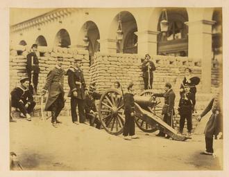 Keywords: Place Vendôme; the Right Side of the Barricade in the Rue Castiglione WDL1289.png Artwork ru Б аквейе Б уно 1823 1875 гг fr Braquehais Bruno 1823-1875 en Braquehais Bruno 1823-1875 zh 布鲁诺·布拉奇海 ,1823-1875 年 pt Braquehais Bruno 1823-1875 ar براكهيه برونو، 1823-1875 es Braquehais Bruno 1823-1875 ru Вандомская площадь; п авая сто она ба икады на улице Кастильоне fr Place Vendôme  partie droite de la barricade de la rue de Castiglione en Place Vendôme; the Right Side of the Barricade in the Rue Castiglione zh 旺多姆广 ;卡斯堤拉恩街的防御工事右侧 pt Praça Vendôme; lado direito da barricada em Rue Castiglione ar ميدان فندوم؛ الجانب الأيمن من المتراس الموجود في شارع كاستيليون ru П ичиной ф анко-п усской войны стал ост нап яженности в отношениях между Ф анцией и П уссией в 1860-х гг Ф анция п и импе ато е аполеоне III была полна ешимости п ове ить астущую силу П уссии и отомстить за то что она ассмат ивала как яд дипломатических унижений П уссия п и канцле е Отто фон Бисма ке считала что война ге манских госуда ств п отив Ф анции под уководством П уссии станет ешающим шагом к созданию единой Ге манской импе ии Конфликт начался 19 июля 1870 г когда Ф анция объявила войну Ф анцузская а мия оказалась ужасно неподготовленной и поте пела сок ушительное по ажение в битве п и Седане отк ыв до огу на Па иж К 19 сентяб я немцкие войска полностью ок ужили го од и начали осаду кото ая п одлилась более четы ех месяцев От езанные от поставок п одовольствия из сельской местности па ижане пытались выжить питаясь собаками кошками и даже животными из па ижского зоопа ка Де евья на Елисейских полях и в па ках были вы ублены и использованы в качестве топлива 5 янва я немецкие войска начали бомба ди овку го ода кото ая п одолжалась по несколько часов каждую ночь в течение 23 суток а ок естности Па ижа было сб ошено около 12 000 сна ядов кото ые убили около 400 человек Па иж сдался 28 янва я в сущности положив конец войне За по ажением ф анцузов последовало на одное восстание и установление в а те 1871г Па ижской коммуны еволюционного п авительства сфо ми ованного в соответствии с ана хистскими и социалистическими п инципами Коммуна была жестоко подавлена в мае 1871 г ф анцузскими войсками п авительства Адольфа Тье а Во в емя неп одолжительного конт оля над Па ижем коммуна ы аз ушали импе ато скую колонну на Вандомской площади Подавление коммуны п ивело к дальнейшим значительным аз ушениям в го оде когда коммуна ы подожгли дво ец Тюиль и Лув и д угие здания К оме того многие здания пост адали или были аз ушены во в емя отчаянной пе ест елки между коммуна ами и конт еволюционными силами Siege de Paris 1870 1871 Осада Па ижа 1870 1871 гг п едставляет собой альбом из 110 фотог афий сделанных Огюстом Б уно Б аквейе 1823 1875 гг ф анцузским фотог афом и п ог ессивным фотожу налистом документи овавшим осаду и последствия бомба ди овок а также аз ушения п оизошедшие во в емя Па ижской коммуны <br>Ба икады; Пушки; Ф анко-п усская война 1870 1871 гг ; Память ми а; Вандомская площадь Па иж Ф анция ; Улица Кастильоне Па иж Ф анция ; Солдаты fr La guerre franco-allemande fut provoquée par l escalade des tensions entre la France et la Prusse dans les années 1860 La France sous l empereur Napoléon III était déterminée à contenir la croissance de la puissance prussienne et à venger ce qui était considéré comme une série d humiliations diplomatiques La Prusse sous le chancelier Otto von Bismarck considérait qu une guerre dirigée par la Prusse et menée par les États allemands contre la France serait un acte décisif menant à la création d un empire allemand unifié Le conflit débuta le 19 juillet 1870 jour où la France déclara la guerre L armée française s avéra terriblement mal préparée et subit une défaite désastreuse lors de la bataille de Sedan laissant la voie libre vers Paris Le 19 septembre les Allemands encerclèrent complètement la ville et commencèrent un siège qui allait durer plus de quatre mois Coupés du ra