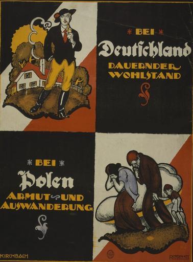 | Keywords: Plakat Bei Deutschland dauernder Wohlstand.jpg Bei Deutschland dauernder Wohlstand; bei Polen Armut und Auswanderung http //www encore-editions com/bei-deutschland-dauern-der-wohlstand-bei-polen-armut-und-auswanderung copyfraud watermark removed or 1919 1921 Fritz Gottfried Kirchbach 1888 “1942 PD-old-auto-1923 1942 Upper Silesia Plebiscite posters Fritz Gottfried Kirchbach Stereotypes Poverty and wealth in art | ||||