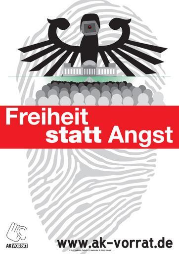 | Keywords: Plakat demo 31052008 3.jpg Aufruf zur Demonstration am 31 05 2008 des Arbeitskreises Vorratsdatenspeicherung Plakat https //wiki vorratsdatenspeicherung de/Bild Plakat_demo_31052008_3 jpg 2008-05-20 Benutzer Dog des wiki vorratsdatenspeicherung de ---Frei verwendbar für jeden --- - Uwe dog Uwe dog from https //wiki vorratsdatenspeicherung de Arbeitskreis Vorratsdatenspeicherung Freedom not Fear 2008 | ||||
