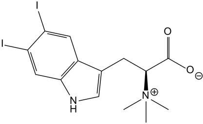 Keywords: Plakohypaphorine D.svg diagram of the alkaloid Plakohypaphorine D own 2007-05-03 Eloil Indole alkaloids