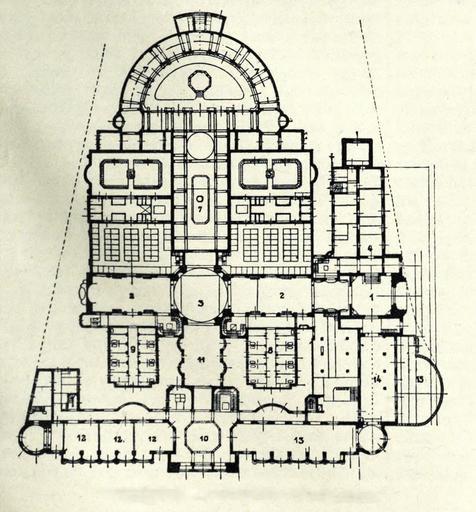 | Keywords: Plan Gellértbad von 1912.JPG de Grundriss des Gellértbades Révai nagy lexikona Az ismeretek enciklopédiája IV Kötet Brutus “Csát Révai Testvérek Irodalmi Intézet Részvénytársaság Budapest 1912<br />picture board 17 Budapest zékesfÅ‘város fürdÅ‘i by page 58 author 1912 Gellért bath plan from 1912 JPG Legende <br /> Schlammbad Grundriss des Zwischengeschosses<br /> 1 Haupteingang des Thermalbades<br /> 2 große Badehalle<br /> 3 Kuppelhalle<br /> 4 Verwaltung und medizinische Behandlungsräume<br /> 5 Thermalbad Männer <br /> 6 Thermalbad Frauen <br /> 7 Sonnenliegehalle Verkaufsräume und Trinkhalle<br /> 8 9 Vier Etagen mit Kabinen-Mineralbädern Schlammbehandlung Kohlensäure heilende Eigenschaften elektrischen Stroms Warmluftbäder Heilwasser Sonnen- und Luftbäder <br /> 10 Hotelrezeption<br /> 11 Hotelhalle<br /> 12 Damenräume Musik- und Lesesäle<br /> 13 Kur- und Diät-Restaurant<br /> 14 Öffentliches Restaurant<br /> 15 Speiseterrasse PD-old Szt Gellért GyógyfürdÅ‘ es Uszoda 1912 works in Hungary |