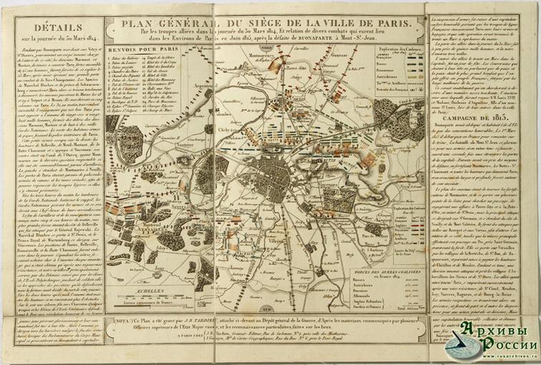 Keywords: Plan general du siege de la ville de Paris (March 18, 1814.jpg Гене альный план осады Па ижа союзными войсками 18 30 ма та 1814 с экспликацией е анее 1815 а ф анцузском языке Г ави ованный в к асках Г ави овал Ж Б Та дье РГВИА Ф 846 Оп 16 Д 4205 Л 1 Выставочный зал феде альных а хивов Выставка « еда ом помнит вся Россия Уникальные документы из оссийских и за убежных а хивов» http //www rusarchives ru/evants/exhibitions/pobeda-1812-2012/43 shtml е анее 1815 Г ави овал Ж Б Та дье 1812 Anniversary exhibitions Russia PD-Art Maps of the Battle of Paris 1814 |