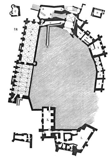 Keywords: Plan.mont.Saint.Michel.2.png Plan du Mont Saint Michel Détail des bâtiments qui formant rez-de-chaussée entourent le sommet du rocher Issu du Dictionnaire raisonné de l'architecture française du XIe au XVIe siècle par Eugène Viollet-Le-Duc 1856 /Abbey Medieval architecture Plans of Mont Saint-Michel Abbey |