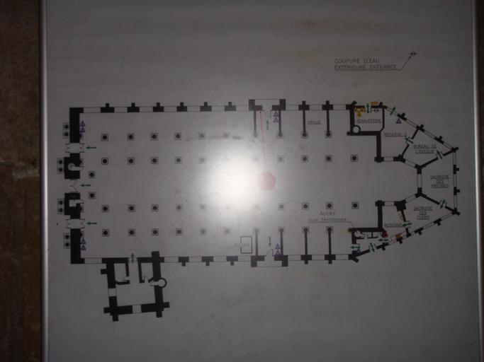 Keywords: Plan ND.JPG Plan de la cathédrale Notre-Dame du Havre Own 2009-06-05 Jérémy76 ImageNote 1 730 1795 367 290 3264 2448 2 Tour ImageNoteEnd 1 ImageNote 2 559 1122 1163 245 3264 2448 2 Nef centrale ImageNoteEnd 2 ImageNote 3 1726 743 175 987 3264 2448 2 Transept ImageNoteEnd 3 ImageNote 4 1905 1077 514 286 3264 2448 2 Nef centrale ancien chœur de Notre-Dame ImageNoteEnd 4 ImageNote 5 2424 1077 428 282 3264 2448 2 Chœur et abside la cathèdre se situe au fond de l'abside ImageNoteEnd 5 ImageNote 6 592 922 1122 192 3264 2448 2 Nef latérale nord ImageNoteEnd 6 ImageNote 7 836 1718 126 78 3264 2448 2 Ancien portail de la chapelle Notre-Dame de 1536 ImageNoteEnd 7 ImageNote 8 579 1399 1142 163 3264 2448 2 Nef latérale sud ImageNoteEnd 8 ImageNote 9 563 1575 983 143 3264 2448 2 Bas-côtés sud anciennes chapelles ImageNoteEnd 9 ImageNote 10 1554 1587 167 122 3264 2448 2 Ancienne chapelle du Sacré-Cœur restant de retable dans le mur est ImageNoteEnd 10 ImageNote 11 1024 1714 61 41 3264 2448 2 Contrefort de la tour se prolongeant dans le bas-côté de la tour ImageNoteEnd 11 ImageNote 12 1909 1383 494 147 3264 2448 2 Nef latérale sud est ancienne nef latérale sud du chœur Partie de la cathédrale restaurée de 2001 à 2004 ImageNoteEnd 12 ImageNote 13 1901 922 490 143 3264 2448 2 Nef latérale nord-est ancienne nef latérale nord du chœur ImageNoteEnd 13 ImageNote 14 2791 1155 69 151 3264 2448 2 Vitrail de l' Ave Maris Stella ImageNoteEnd 14 ImageNote 15 2403 1387 151 147 3264 2448 2 Chapelle terminative de la nef latérale sud chapelle du Saint-Nom de Marie avec l'autel privilégié ImageNoteEnd 15 ImageNote 16 2387 922 159 159 3264 2448 2 Chapelle terminative de la nef latérale nord ancienne chapelle du Bon Pasteur autel de l'ancienne chapelle mariale absidiale ImageNoteEnd 16 ImageNote 17 2460 1142 135 167 3264 2448 2 Emplacement de l'ancien maître-autel ImageNoteEnd 17 ImageNote 18 2599 1171 69 106 3264 2448 2 Maître-autel actuel ImageNoteEnd 18 ImageNote 19 2672 1089 143 265 3264 2448 2 Ancienne emplacement de la chapelle mariale ImageNoteEnd 19 ImageNote 20 555 779 991 139 3264 2448 2 Bas-côté nord ancienne chapelle ImageNoteEnd 20 ImageNote 21 1554 771 155 143 3264 2448 2 Chapelle Saint-Sébastien ImageNoteEnd 21 ImageNote 22 1901 747 143 175 3264 2448 2 Ancienne chapelle de Saint-François Xavier emplacement vide décoré d'un confessionnal; sur le mur ouest tableau de l'adoration des mages Sur le mur est on aperçoit en haut des traces de l'emplacement d'un ancien retable; sur le même mur une croix est gravée certainement lors d'un ancien pèlerinage avec un tétragramme hébreux signifiant L'Agneau ImageNoteEnd 22 ImageNote 23 2060 747 151 171 3264 2448 2 Ancienne chapelle de Saint-François de Gales Aujourd'hui c'est l'emplacement de l'orgue de chœur; derrière les tuyaux d'orgues sur le mur est on aperçoit une niche de l'ancien retable ImageNoteEnd 23 ImageNote 24 2220 747 139 171 3264 2448 2 Ancienne entrée nord de la sacristie ImageNoteEnd 24 ImageNote 25 2236 1530 143 184 3264 2448 2 Entrée de la sacristie sud ImageNoteEnd 25 ImageNote 26 2228 698 122 57 3264 2448 2 Vitrail présentant Henri IV visitant le Havre et l'église Notre-Dame en travaux ImageNoteEnd 26 ImageNote 27 2244 1722 126 49 3264 2448 2 Vitrail présentant la messe de réduction de la ville après la reprise de la ville par les troupes royale ImageNoteEnd 27 ImageNote 28 2064 1526 163 196 3264 2448 2 Ancienne chapelle du Saint-Sacrement; l'autel actuel et son retable provient de l'église Sainte-Cécile du Havre ImageNoteEnd 28 ImageNote 29 1914 1542 143 180 3264 2448 2 Ancienne chapelle de Saint-Vincent de Paule; l'autel actuel provient de la chapelle du collège des ormeaux du Havre ImageNoteEnd 29 ImageNote 30 1685 1612 41 86 3264 2448 2 Emplacement d'une grande statue de Jésus en croix avant elle était situé sur un mur à côté de l'entrée de la tour ImageNoteEnd 30 ImageNote 31 1738 1624 33 90 3264 2448 2 Statue d'une croix peinte polychrome provenant de la chapelle du collège des ormeaux du Havre ImageNoteEnd 31 ImageNote 32 1681 653 269 94 3264 2448 2 Façade du croisillon nord et portail de l'ave Maria ou de l'annonciation ImageNoteEnd 32 ImageNote 33 1685 1730 261 90 3264 2448 2 Façade et portail du croisillon sud ImageNoteEnd 33 ImageNote 34 339 706 233 1110 3264 2448 2 Façade principale ouest ImageNoteEnd 34 ImageNote 35 347 1444 212 343 3264 2448 2 Portail aux anges jouant de la trompette ImageNoteEnd 35 ImageNote 36 351 718 204 339 3264 2448 2 Portail aux anges jouant de la trompette ImageNoteEnd 36 ImageNote 37 351 1057 204 384 3264 2448 2 Portail principale décoré d'un tympan de la Vierge Marie tenant l'enfant Jésus datant de 1831 ImageNoteEnd 37 ImageNote 38 734 783 151 65 3264 2448 2 Emplacement actuel de l'accueil de la cathédrale ImageNoteEnd 38 ImageNote 39 583 1705 1126 33 3264 2448 2 Emplacement de plusieurs consoles du chemins de croix du paquebot Normandie ImageNoteEnd 39 ImageNote 40 567 747 1155 33 3264 2448 2 Emplacement de plusieurs consoles du chemins de croix du paquebot Normandie ImageNoteEnd 40 ImageNote 41 543 967 45 94 3264 2448 2 Emplacement d'une console du chemin de croix du paquebot Normandie au-dessus de l'entrée ImageNoteEnd 41 ImageNote 42 547 1481 61 69 3264 2448 2 Emplacement d'une console du chemin de croix du paquebot Normandie au-dessus de l'entrée ImageNoteEnd 42 ImageNote 43 539 1085 192 330 3264 2448 2 Grand-Orgue ImageNoteEnd 43 Interior of Cathédrale Notre-Dame Le Havre Plans of Cathédrale Notre-Dame du Havre |