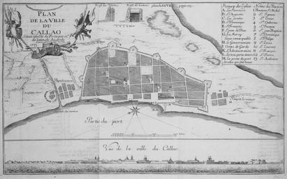 Keywords: Planche XXVII.jpg Planche XXVII A voyage to the south-sea and along the coasts of Chili and Peru in the years 1712 1713 and 1714 by Monsieur Frezier Exemplaire de la bibliothèque patrimoniale de Gray 70100 France 1717 Amédée Frézier scan Jeffdelonge PD-old-100 Frézier's travel 27 El Callao |