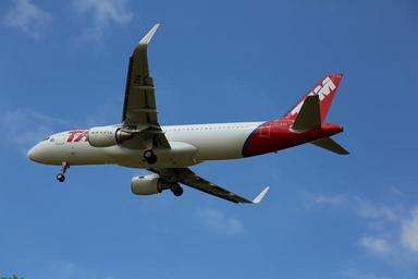 Keywords: plane tam flying commercial aircraft trip fly take-off sky airport air wing clouds air transport ride stage length motor cloud