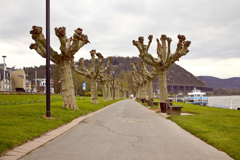 Keywords: plane trees trees sidewalk away nature landscape walk sky clouds rest green meadow mood still beautiful riverside