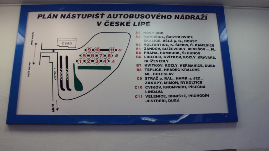 Keywords: Plánek autobusového nádraží Č.Lípa.jpg cs Orientační plán stanovišť autobusového nádraží Česká Lípa uvnitř budovy own Zákupák 2009-12-08 Česká Lípa bus station