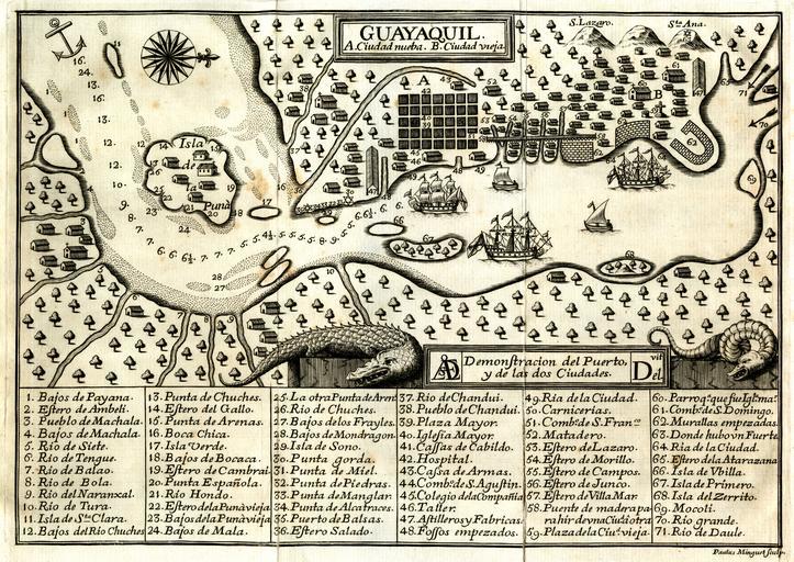 | Keywords: Plano de Guayaquil en 1741, grabado por Paulus Minguet - AHG.jpg LargeImage es Croquis de Guayaquil grabado por Paulus Minget que el padre Jacinto Morán de Butrón incluyó en su obra Compendio Histórico de la Provincia Partidos Ciudades Astilleros Ríos y Puerto de Guayaquil en las Costas de la Mar del Sur - Año de 1741 - Dedicado al Rey Don Felipe Quinto Nuestro Señor en su Real y Supremo Consejo de las Indias Diapositiva de acceso público consultada del ejemplar original que se custodia en los Fondos Bibliográficos Sección Historia de Guayaquil del Archivo Histórico del Guayas - Guayaquil Ecuador Imagen publicada en la obra de Abel Romeo Castillo Los Gobernadores de Guayaquil en el siglo XVIII Consultado y compartido por el usuario Jodison Javier García Alcivar 1741 per above cc-zero Old maps of the Viceroyalty of Peru Uploaded with UploadWizard History of Guayaquil History of Ecuador 1741 maps Ecuador in the 1740s Isla Puná Gulf of Guayaquil |