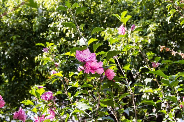 Keywords: plant flowers purple pink views hibiscus natural leaf background pink hibiscus
