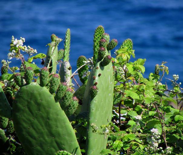 Keywords: plant sea cactus green flower shrub nature costa beach palamós costa brava catalonia about foreground mediterranean plants mediterranean sea blue beautiful water