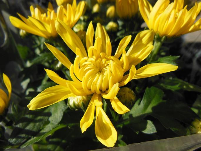 Keywords: plants flowers chrysanthemums yellow chrysanthemums close-up yellow sunshine color easter easter color happy color beautiful green herbal market