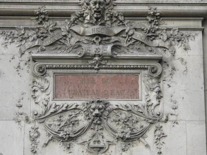 Keywords: Plaque de la rue du Château-d'Eau.jpg en Street sign of the rue du Château d'eau on the wall of the town hall of the 10th arrondissement of Paris fr Plaque de rue de la rue du Château d'eau sur la mairie du 10 e arr de Paris own Tangopaso 2011-04-29 48 52 19 84 N 2 21 22 E region FR_heading NNE Rue du Château-d'Eau Paris Town hall of Paris 10e arrondissement Street signs in Paris 10e arrondissement Fluctuat nec mergitur |