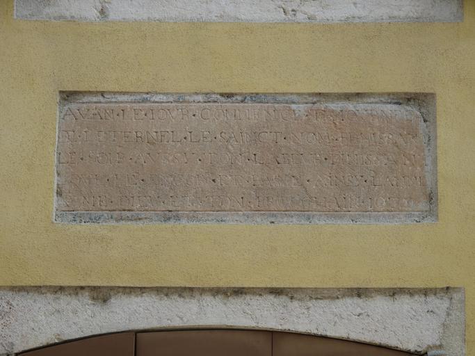 | Keywords: Plaque rue de l'hopital (Tournus).jpg en Plaque rue de l'hopital in Tournus Saône-et-Loire France The text is Before sunrise begin your day By blessing the Holy Name of the Eternal Also on the evening finishing your work Bless Him again and so all the year round Love God and your neighbour 1672 - fr Plaque rue de l'hôpital à Tournus Saône-et-Loire Le texte est Avant le jour commence ta journée De l'Éternel le saint Nom bénissant Le soir aussi ton labeur finissant Loue Le encore et passe ainsi l'année Aime Dieu et ton prochain 1672 - own Tangopaso 2012-05-26 11 07 07 46 562018 4 911822 region FR_heading NNE Plaques in Tournus Plaques referencing 1672 Christian inscriptions |