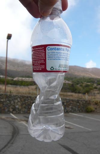 Keywords: Plastic bottle at 9000 feet, sealed at 14000 feet.png en Plastic bottle sealed at 14 000 feet on Mauna Kea observatory on the island of Hawaii taken down to 9000 feet where the air pressure is crushing the botte own Quantockgoblin 2009-07-02 Air pressure Plastic bottles |
